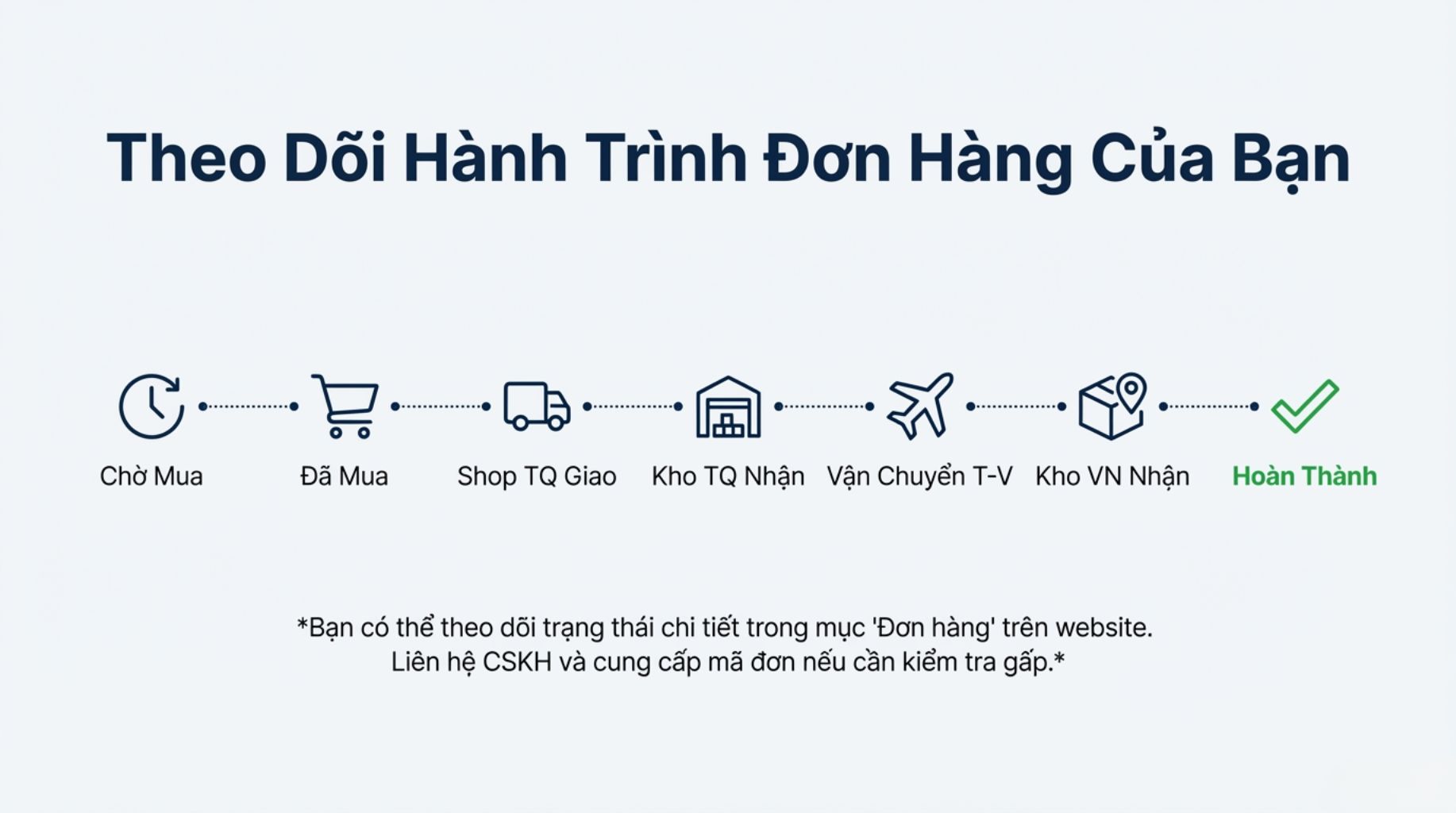 Khi có thay đổi trạng thái, bạn chỉ cần vào mục “Đơn hàng” để theo dõi. Nếu cần gấp, gửi mã đơn cho CSKH để kiểm tra nhanh.
