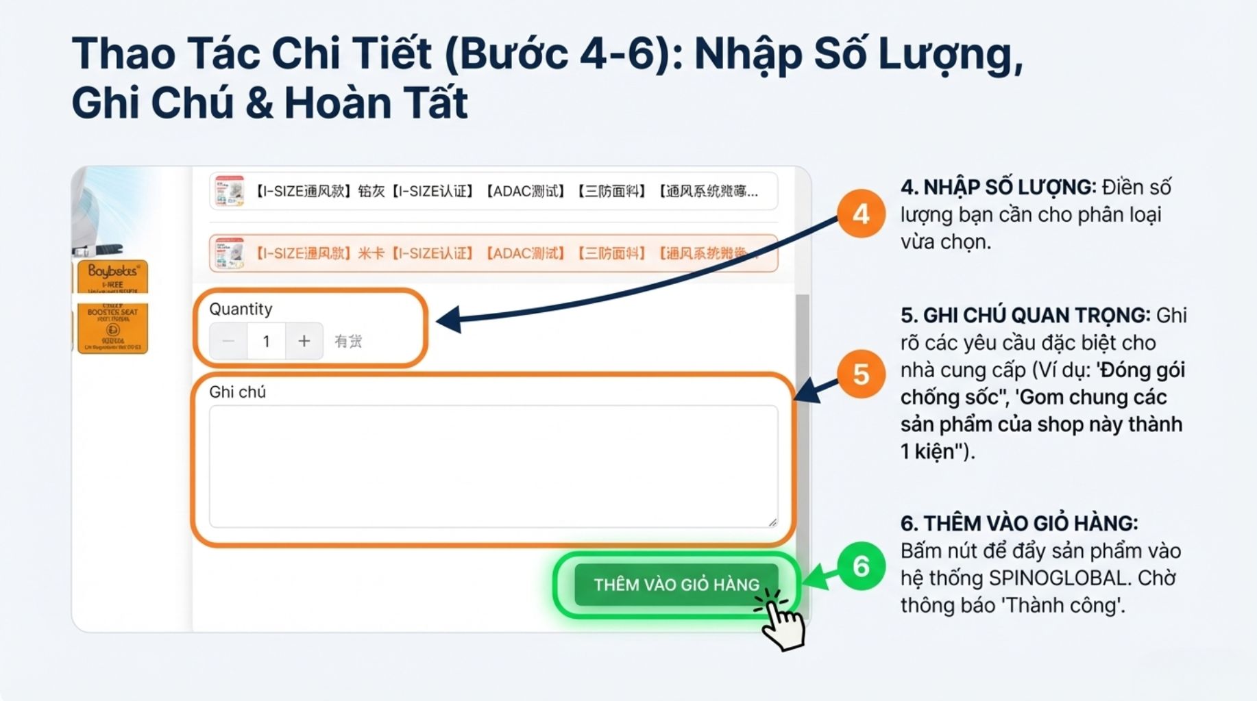 Bấm “Thêm vào giỏ SPINOGLOBAL” hoặc “Tạo đơn” (tùy nút hệ thống)