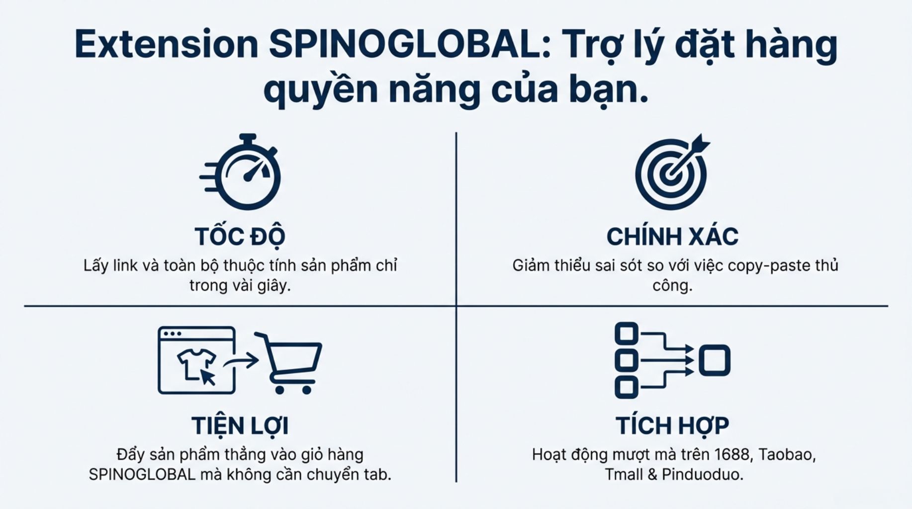 Extension SPINOGLOBAL là tiện ích cài trên trình duyệt (Chrome/Edge/Coc coc) giúp bạn: